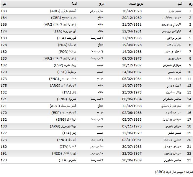 | | رغم الصعوبات التي واجهها منتخب الأرجنتين في التأهل إلى نهائيات كأس العالم جنوب إفريقيا FIFA 2010، ضمن تصفيات منطقة أمريكا الجنوبية | سيحط منتخب التانجو في القارة السمراء ساعيا بكل شوق لاستعادة أمجاد البطولة التي امتنع عليهم لقبها طوال 24 عاما، منذ الفوز في دورة 1986 التاريخية، بفضل داهية الأرجنتينيين ومدربهم الحالي، دييجو أرماندو مارادونا، الذي سيحاول جاهدا معانقة الكأس الذهبية من جديد، بصحبة لاعبين موهوبين تدوي أسماؤهم في كل أنحاء العالم. ولا يتألف فريق مارادونا من لاعبين مخضرمين فقط، بل يضم لاعبين شباب من عيار ليونيل ميسي، استطاعوا جميعا إثبات علو كعبهم وتوجوا مع منتخب بلادهم ضمن منافسات الفئات العمرية الصغرى. وقد يتمكن فريق التانجو، إذا حصل الانسجام الضروري بين عناصره، من إبعاد النحس الذي يلاحق نجوم هذا البلد منذ نهاية كأس أمريكا الجنوبية 1993 وتصحيح أوضاعه على الأرض الإفريقية. التصفيات بلغ منتخب الأرجنتين النهائيات الإفريقية بعد مسيرة عسيرة ومضطربة، كما حدث سنة 1985، قبيل تتويج زملاء مرادونا حينذاك باللقب في المكسيك. وافتتح المنتخب تلك التصفيات بشكل متواضع، مع المدرب ألفيو باسيلي، الذي ابتعد عن ترسانة التانجو بعد الهزيمة أمام التشيلي في اليوم العاشر من من تصفيات أمريكا الجنوبية. ثم تحسن مستوى الفريق بعد ذلك بعد أن تقلد مارادونا مسئولية المنتخب وانتزع التأهل في النهاية عندما انتصر بعد عذاب على بيرو (2 - 1) وعلى أوروجواي (0 - 1). وكانت حصيلة المنتخب الأرجنتيني في النهاية 28 نقطة، وهي أقل حصيلة يحققها منذ تطبيق نظام التصفيات الحالي: 8 انتصارات، و4 تعادلات، و6 هزائم. وتعددت العثرات في طريق الأرجنتين، فمن السقوط الأول أمام شيلي في سانتياجو (0 - 1)، إلى الهزيمة الساحقة على يد بوليفيا (1 - 6)، ثم الخسارة على أرض الوطن في مباراة البرازيل (1 - 3). لكنهم استطاعوا الانتفاض مرة أخرى خلال المباراتين الأخيرتين، بفضل هدف مارتين باليرمو في الدقائق الأخيرة أمام بيرو والانتصار الحاسم أمام منتخب الأوروجواي. أبرز النجوم يثق جمهور الأرجنتين ثقة كبيرة في اللاعب ليونيل ميسي، ويعلق عليه الكثير من الآمال والرجاء. ويعتبر العديد من متتبعي وعشاق كرة القدم نجم فريق برشلونة الحالي أفضل لاعب في العالم. فهل ينجح في جنوب أفريقيا في تحقيق آمال محبيه؟ كما ستكون دورة FIFA 2010 فرصة للاعبين مثل خافيير ماسكيرانو وخوان سيباستيان فيرون للثأر لأنفسهم والـتألق من جديد بعد نكبة دورة كوريا واليابان 2002. المدير الفني يعتبر الكثيرون دييجو أرماندو مارادونا أفضل لاعب في تاريخ كرة القدم، وهو الآن أمام فرصة ممتازة ليدخل التاريخ كمدير فني بعد أن تربع على العرش لاعبا. كان مارادونا لاعبا جامحا مندفعا مظفرا، وسيكون بإمكان لاعبي الأرجنتين أن ينهلوا من تجربة هذا اللاعب الأسطوري والهداف الكبير والاستفادة منها في بحثهم عن اللقب العالمي المفقود منذ سنوات. بدأ مارادونا العمل في مجال التدريب منذ سنة 1994 مع فريق مانديو دي كوريينتيس. ثم انتقل إلى نادي راسينج كلوب أبييانيدا بعد ذلك بسنة واحدة، قبل أن يعود سريعا إلى الميادين لاعبا. والآن أصبح مسئولا عن أحب الفرق إلى قلبه، واستطاع أن يمر به في مرحلة التصفيات إلى بر الأمان. وبقيت له المرحلة الثانية، تلك المرحلة التي يشهد التاريخ على أنه أدرى أهل الكرة بها. تاريخ المنتخب في كأس العالم - وصل المنتخب الأرجنتيني إلى المباراة النهائية في كأس العالم FIFA 4 مرات: ففاز على هولندا سنة 1978 وعلى ألمانيا سنة 1986، وخسر من أوروجواي سنة 1930 ومن ألمانيا سنة 1990. - ستشهد دورة جنوب إفريقيا 2010 المشاركة رقم 20 لمنتخب الأرجنتين في البطولة ورقم 10 على التوالي. - ستكون دورة جنوب إفريقيا 2010 خامس مشاركة لدييجو مارادونا في نهائيات كأس العالم FIFA، بعد أن شارك في دورات 1982 و1986 و1990 و1994. تصريحات "أقول للاعبي منتخب الأرجنتين: أمامكم مسيرة شاقة طولها 30 يوما، تهون فيها كل الصعاب من أجل معانقة الكأس. إن من ينال هذا الشرف يكون كمن